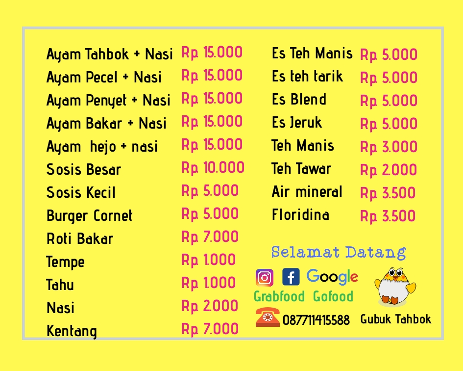 Gubuk Tahbok is a cozy diner located in Cipayung, Depok, that perfectly blends bold flavors with an inviting atmosphere. Its standout dish, Ayam Tahbok, delivers an unforgettable punch of spiciness and tenderness that locals rave about. The spicy sambal complements the succulent chicken, creating a balance that’s both daring and satisfying. Beyond the signature ayam, the menu includes trendy favorites like seblak and cilok kuah, perfect for casual hangouts and satisfying local street food cravings.